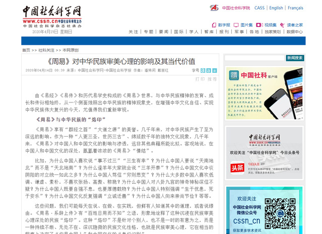 中国社会科学网:《周易》对中华民族审美心理的影响及其当代价值
