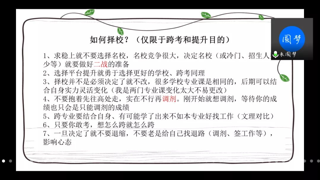为助力西华学子更好备战考研,校团委于4月18日以线上视频会议的形式举办了2020学年“研”之有“你”考研经验分享会。在2020研考中取得优异成绩的我校学生蒲瑞、徐文、朱圆梦、项寅浩以及各学院有考研意向的210名同学参加了本次分享会。