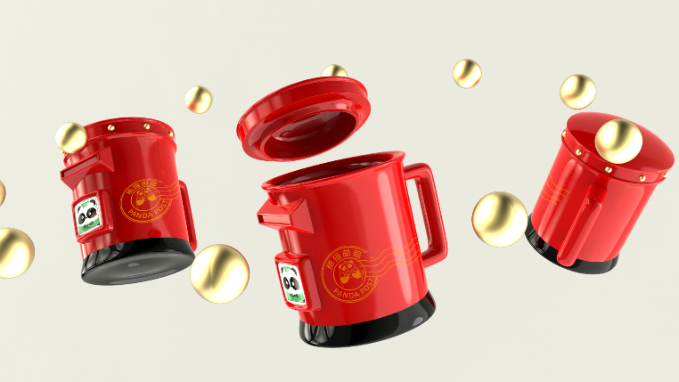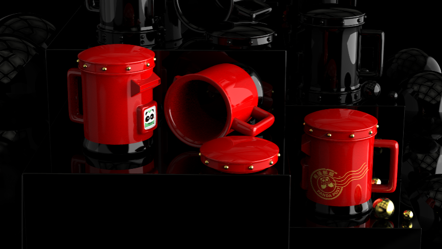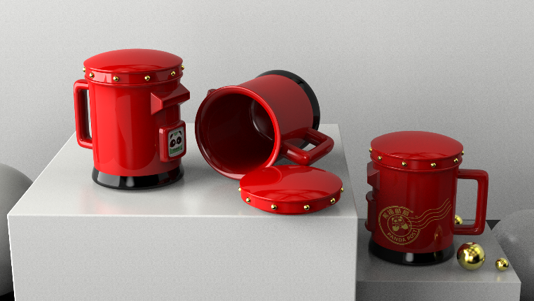 熊猫邮局的文创团队与澜山的文创团队通过多次头脑风暴与设计推敲,多次调整尺寸与各种细节,电脑建模渲染调整方案多达50多次。研发团队的研究生兼骨干设计师何平也快扛不住了,忍不住嘀咕“做熊猫邮筒杯,自己都快熬成熊猫眼了,起早贪黑赶进度自己还成了国际邮差时间了。”何平说:“周老师在设计细节上将他是处女座的性格展现得很彻底呀!”在项目过程中,为了不断地追求杯子渲染的光泽感、金色邮戳在红色釉面的效果,渲染文件已经多得“快溢出电脑”了。