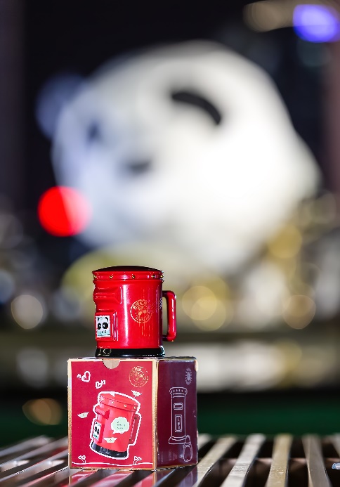 文创杯的杯盖上嵌有十颗金色凸钮,寓意十全十美。采用中国红的红色作为主色调,契合了中国红吉祥如意的色彩含义。杯身上烫金一枚金灿灿的邮戳。整个创意设计调用的产品语义学让“文旅邮”充分结合,让传递祝愿成为一种动机、一种邮政涵义,也成为一种旅行的温暖意义。