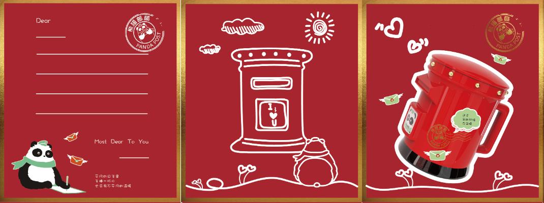 “熊猫邮筒杯”的包装盒其中一面融入了明信片设计