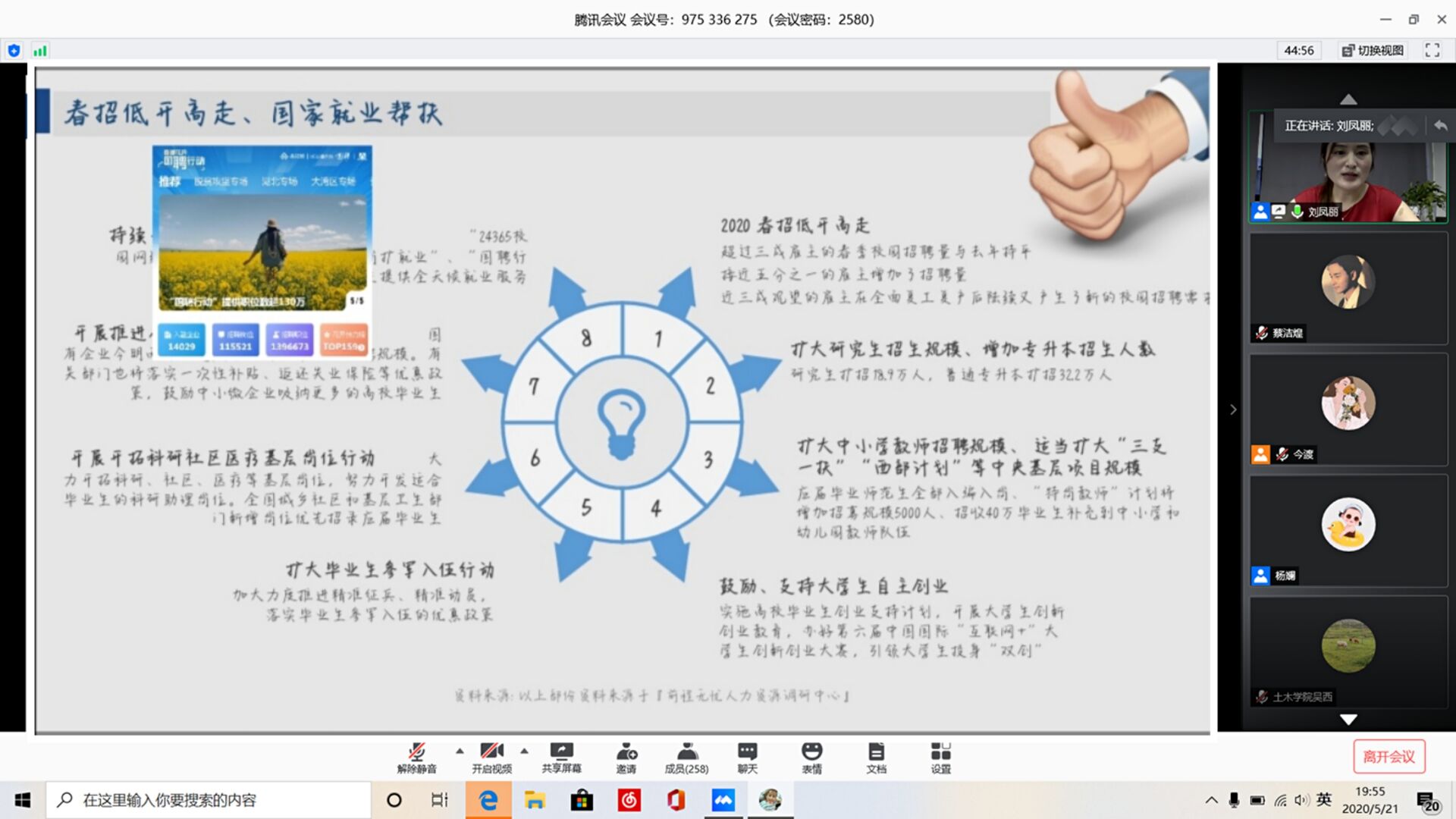 大赛期间,为帮助同学们更好地了解就业、了解简历、了解面试,我校于5月21日晚19:30,举办《一“简”倾心,面“面”俱到——浅谈疫情影响下如何提升就业能力》公开课。本次课程由杨舒婷老师主持,全国就业指导分析师刘凤丽老师主讲。刘老师首先对参赛作品进行细致点评,而后围绕疫情下的就业形势、就业政策、如何制作吸睛简历、如何在面试中途脱颖而出等问题进行讲解,最后在互动提问中对同学们的众多问题一一进行解答,同学们纷纷表示受益匪浅。