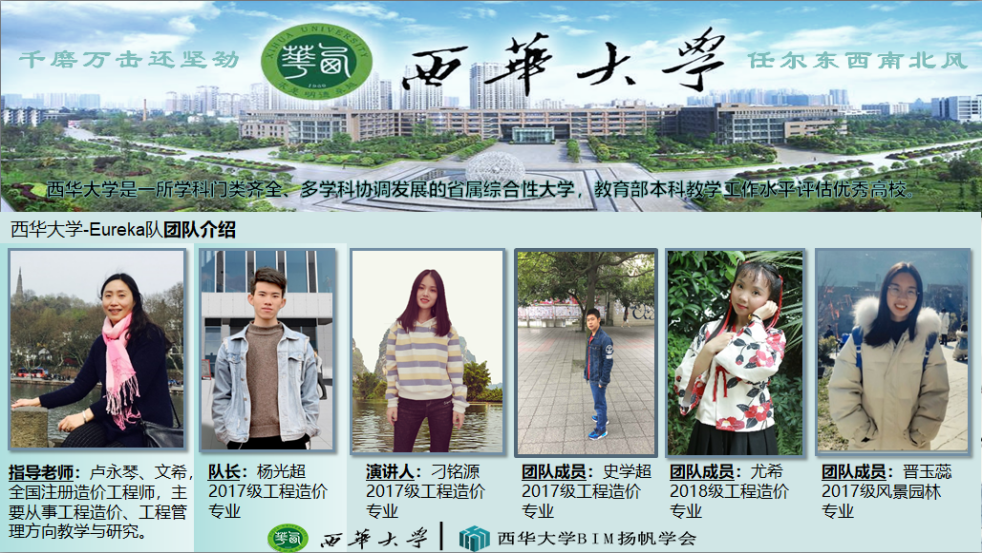 科技时代信息化,大数据化日渐成熟,作为建筑行业和网络深层次接轨孵化的产物——BIM应用近年来也开始在全国各地推广试用,作为一项颠覆设计、施工管理的新技术,BIM彻底改变了相关人员的工作或管理方式。在这次大赛前期准备工作中,西华学子通过自己的不懈努力,将BIM相关理论知识和实际运用相结合,对BIM应用的了解更进一步。在本次大赛中,我校学子充分展示了BIM应用水平和综合实力。