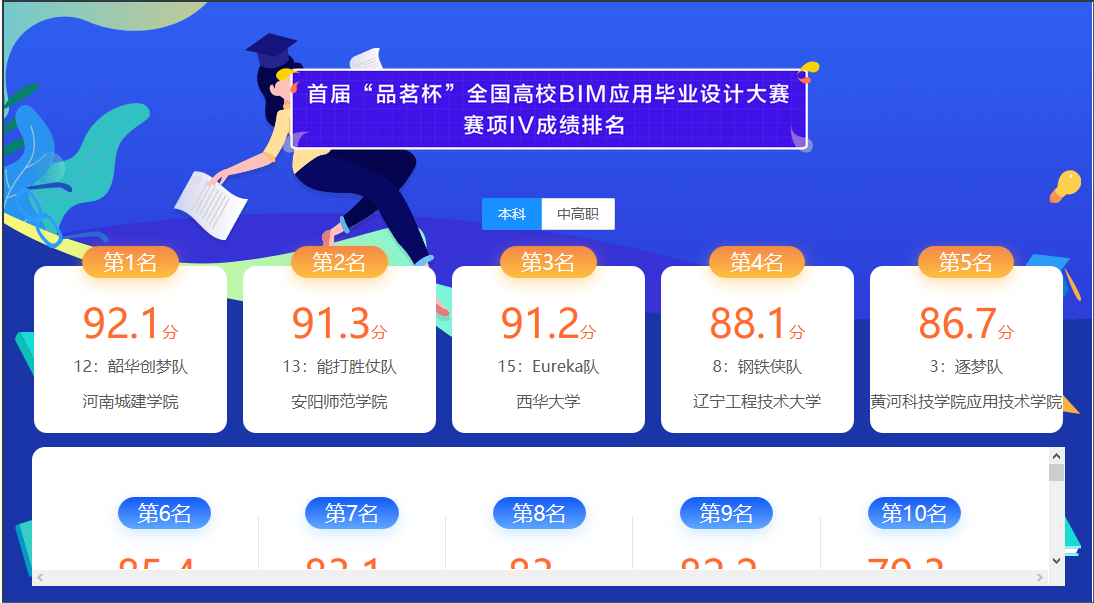 大赛赛项Ⅳ(BIM项目管理方案设计)总决赛排名情况