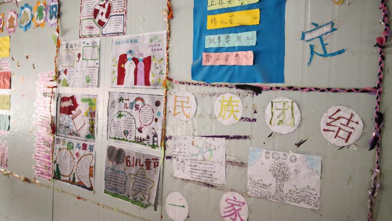板房教室学生自制的墙报