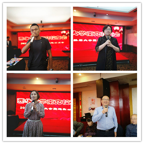 老校友代表讲话中的热情欢迎、亲切叮嘱和悉心鼓励让校友们倍感温馨。1979级材料专业校友刘文川就“求是、明德、卓越”的母校校训分享了自己的感受,他还为大家诵读了自己的韵文《祎做红尘明白人》,表达对母校和校友们的祝福。2001级美术专业校友粟高华说到,我们的一生都有一段时光在同一个校园里写下过各自的诗篇,无数个青春岁月在母校交融重演,这是非常珍贵的缘分,她叮嘱校友们要保持良好的身心状态、不忘初心秉承西华精神,做一个脚踏实地、坚持目标、努力实现自我梦想的人,同时希望大家能多多参加校友会的活动,加强联络和交流。2011级工商管理专业校友伏天义通过在校取得的法学双学位毕业证书,目前就职于律师事务所,他说到,在母校获得的学习和锻炼机会,让自己有机会在激烈的竞争环境中通过第二学位的学习经历和个人的综合素质能力,就职于自己喜欢的行业,在感恩母校培养的同时,也真诚祝愿母校的明天更加辉煌。
