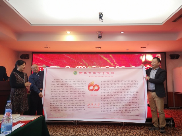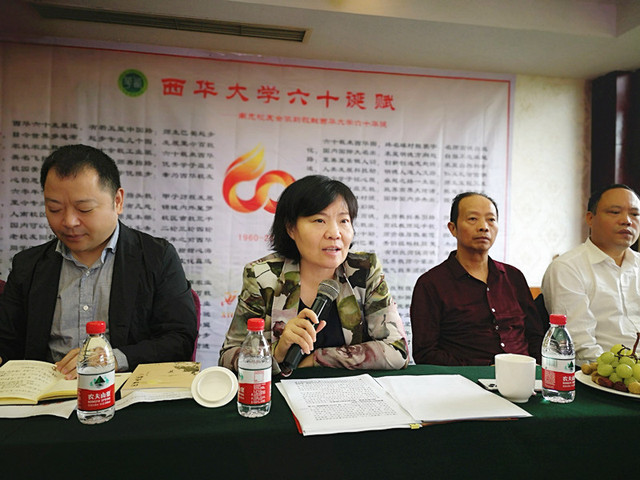 接着,王丽娟代表母校接受了刘文川校友在母校建校六十周年之际,精心创作的《西华大学诞赋》。