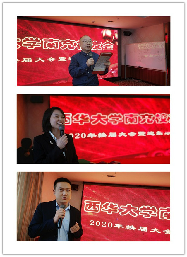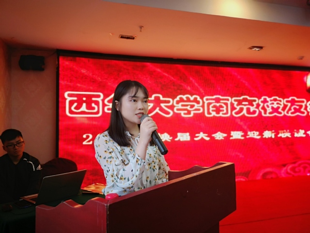 2016级汉语言文学专业何箐和李欣玲校友代表新校友分享了自己的感言。何箐用“呐喊”“彷徨”和“朝花夕拾”三个词形容了她来到南充工作期间的状态,从刚毕业怀抱满腔热情投身工作,到学会独立面对生活的无奈,再到接到南充校友会秘书长电话时,她对这个陌生的城市又多了一份亲切感和归属感。和校友们的相聚又让她怀念起在母校的点点滴滴,母校“求是、明德、卓越”的校训仿佛就在耳边,鼓励着自己继续勇敢前行。曾作为西华大学校史馆讲解员的李欣玲校友感叹到,许多次看到老校友们回到母校,在老照片前久久凝望、眼含泪光,“初闻不识曲中意,再听已是曲中人”,毕业后离开学校,在校园里留下的足迹、挥洒的汗水、学习生活的场景无不让她魂牵梦绕。如今作为一名当地小学教师的她,在实现自己“教书育人”梦想的路上,也时刻谨记大学期间老师们的谆谆教导,努力为祖国的教育事业贡献一份力量,她在向南充校友会搭建校友们交流的平台表达感谢的同时,也向校友们和母校送上了诚挚的祝福。