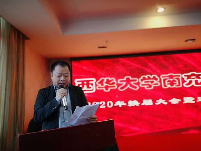 大会伊始,与会人员观看了西华大学宣传片,通过视频了解母校近年来各方面的建设和发展情况。接着,校友办主任王丽娟宣读了《关于南充校友会新一届理事会成员组成的通知》,宣布新一届理事会成员的组成,在与会校友们的共同见证下举行了会旗交接仪式,王丽娟从上一届会长、81级机制专业校友杨献龙手中接过南充校友会会旗,并交接到新一届会长、82级机制专业校友赵燕辉手中,简单的仪式不只是会旗的交接,更是母校对校友的嘱托和校友会责任的传承。