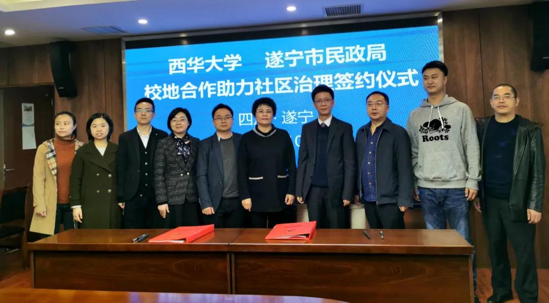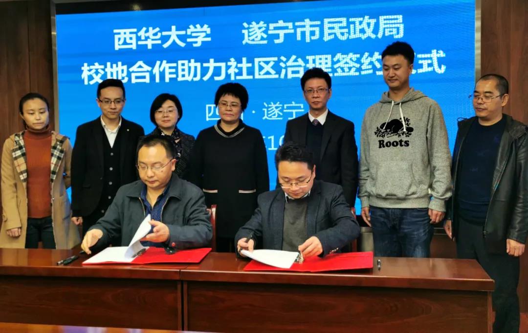 在学术交流合作方面,将协商开展学术交流机制,遂宁市民政局为西华大学师生在当地调研或开展学术活动提供支持和方便。在项目合作方面,西华大学专业团队加入遂宁市民政局社区治理专班,评估遂宁市城乡社区发展的现有成效、薄弱环节和发展潜力。