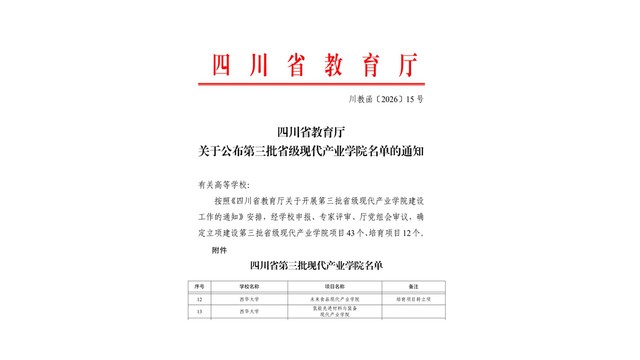 西华大学新增两个省级现代产业学院