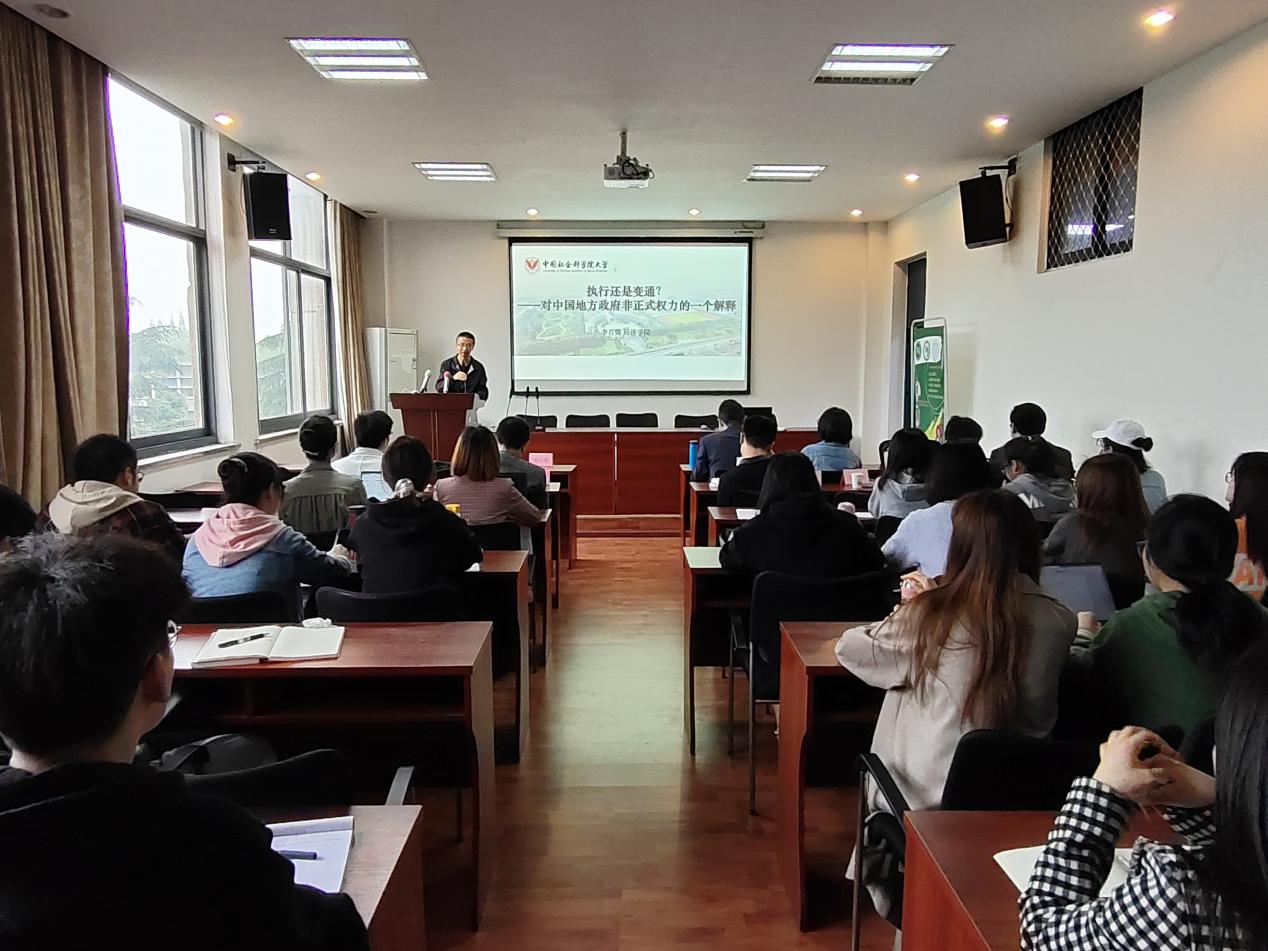学术研讨环节,来自中国社会科学院大学的李石强副教授以“政策执行与体制改革”为题作了报告。文章基于一般委托人框架,构建了一个具有事后私人信息的两期模型,对政府非正式权力进行解释。模型表明,中国各级地方政府对中央政策进行灵活变通和非严格执行取决于社会环境冲击力大小。