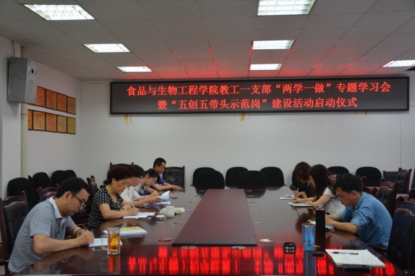 6月1日上午,食品与生物工程学院教工一支部在学院会议室召开了“两学一做”专题学习会议暨“五创五带头示范岗”建设活动启动仪式,支部全体教工党员参加了此次会议。会议由支部书记李矿霞主持。