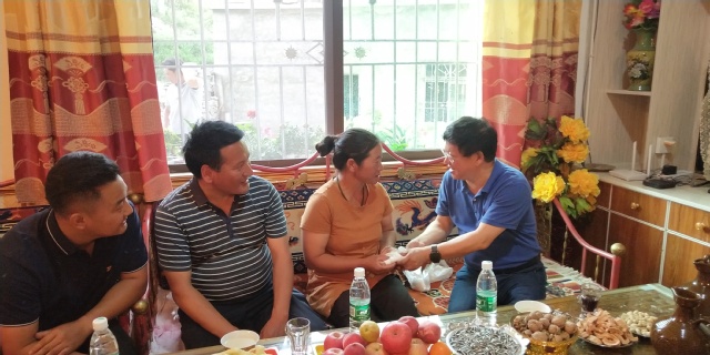 随后,工作组一行前往水磨沟村受灾户春花家,该家庭上高三的孩子患有肾病综合症,每两个月都到成都进行治疗,加之该户房屋在2018年11月白格堰塞湖泄洪过程被冲毁,家庭经济比较困难。在扶贫办的协调下,我校98级校友苏方红慷慨解囊,连续三年捐赠助学金资助该学生,帮助该户渡过难关。刘小兵代苏方红校友捐赠2021年教育救助1万元,鼓励学生认真学习,将来回馈社会。春花老乡感激地说,西华大学帮助我们家重建房子,搭建院坝,生活上也给了很大的帮助,现在日子越过越好了。