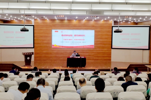 6月25日下午,副校长刘小兵在图书馆报告厅为分管部门和联系学院科级以上党员干部作了题为《奋进新征程建功新时代》的专题党课。