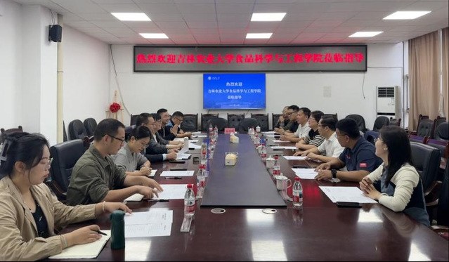 于寒松高度赞扬了我校食品与生物工程学院的建设成效。他详细介绍了吉林农业大学食品科学与工程学院的学科特色、师资队伍及科研方向,并特别强调了两院在农产品贮藏加工等领域的共同兴趣与广阔合作前景,表达了加强交流、共谋发展的强烈愿望。