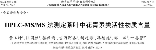 近期,西华大学食品与生物工程学院陈祥贵教授团队、黄玉坤教授课题组在茶叶检测与综合利用领域取得系列新进展,为川茶产业的绿色发展与高值化利用提供了坚实的科技支撑。