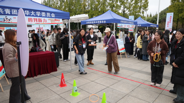 在随后的有奖问答与提问交流环节,同学们踊跃参与,现场气氛热烈。作为本次防艾宣教系列活动的重要组成部分,西华大学同期在校园内举办了“关‘艾’行动”防艾游园会。游园会设置“‘艾’的承诺”签名墙、“防‘艾’棋迹”棋盘冒险、“击碎‘艾’情”沙包投掷等系列主题游戏。同学们通过参与游戏,在轻松愉快的互动中深化了对防艾知识的理解,增强了自我保护意识与社会责任感。