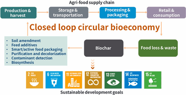 生物炭(Biochar)作为一种由废弃生物质转化而成的富碳材料,因其在多种应用场景中所展现出的功能多样性而备受关注。本文系统梳理了不同来源植物性食品废弃物的特性,详细阐述了通过热裂解、烘焙和水热炭化三种典型热化学工艺将其转化为生物炭的过程及反应机理,并针对不同研究中所制备生物炭的性质进行了全面比较与分析。此外,文章重点介绍了生物炭在农业食品系统中的多样化应用,从生命周期和技术经济角度评估了其可持续性,总结了相关政策法规,并对生物炭产业的未来发展前景作出了展望。
