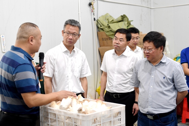 28日上午,工作组一行乘车前往龙蟠镇,参观企业、调研村情。刘树根一行首先来到龙蟠镇食用菌基地,参观了杏鲍菇的生产车间,了解杏鲍菇的种植以及贫困户的入股、分红、用工等情况,考察了企业研发的菌汤包和蘑菇酱等系列精加工产品。刘树根在调研中表示,学校教职工工会福利费,也可通过“832”平台,采购一些食用菌基地的优质产品。