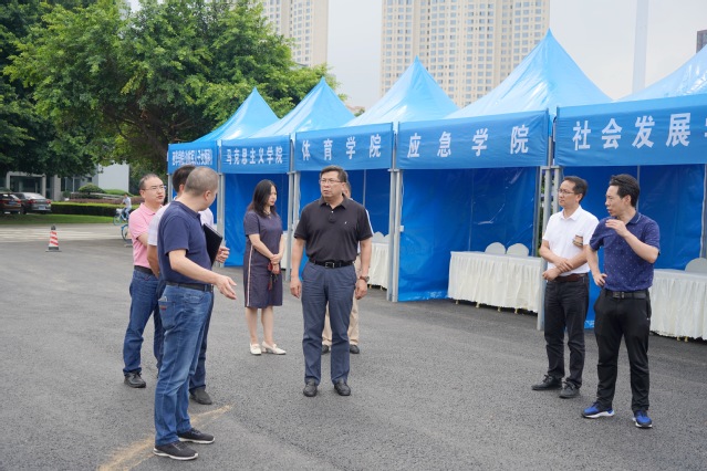 在迎新集中报到点检查迎新准备工作