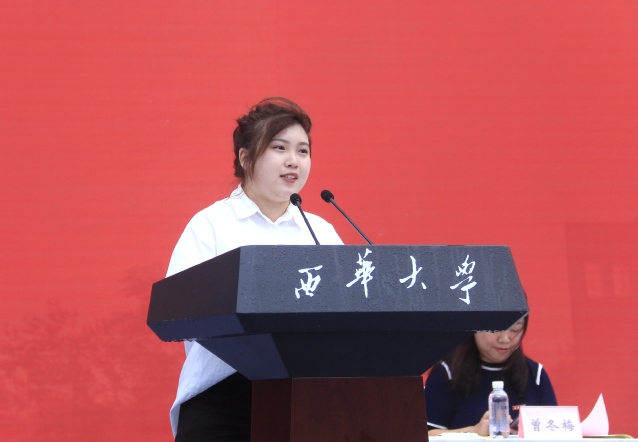 校区学生会代表、美术与设计学院产品设计专业李沛瑶分享了自己在宜宾校区的求学经历和感受,希望学弟学妹们只争朝夕,不负韶华,成为德智体美劳全面发展的新时代大学生,为实现中华民族伟大复兴的“中国梦”贡献西华力量!