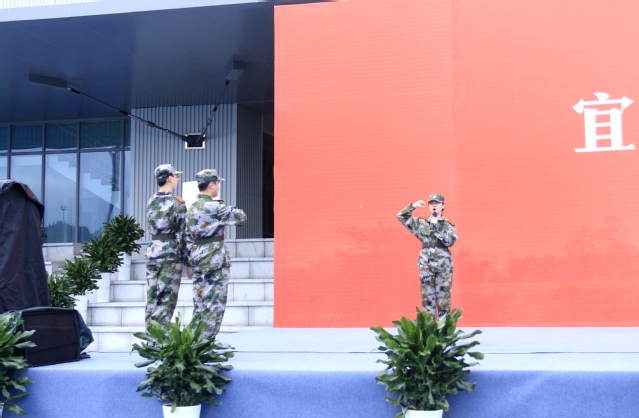 承训部队、武警宜宾支队中校大队长董益表示,希望同学们敢于挑战自我,除娇气、练胆气,去惰性、砺血性;乐于锤炼自我,战烈日、斗酷暑,比意志、拼作风;勇于超越自我,走前列、当标兵,扛红旗、争第一,经受军训的洗礼,练就军人的气质,走出坚定的步伐。