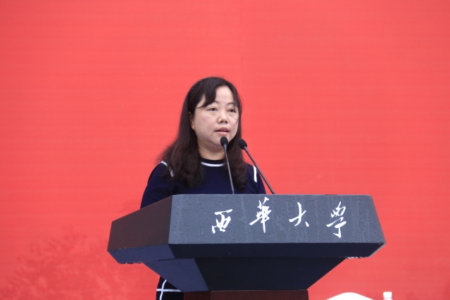 西华大学宜宾校友会会长、1994级校友曾东梅作为校友代表发言,她希望学弟学妹们在这风景如画、环境清幽、设施先进的宜宾校区开始新生活的同时,要细化人生规划、确保学有所成;要积极进取、有责任担当;要坚定信心、永不放弃,做最好的自己。