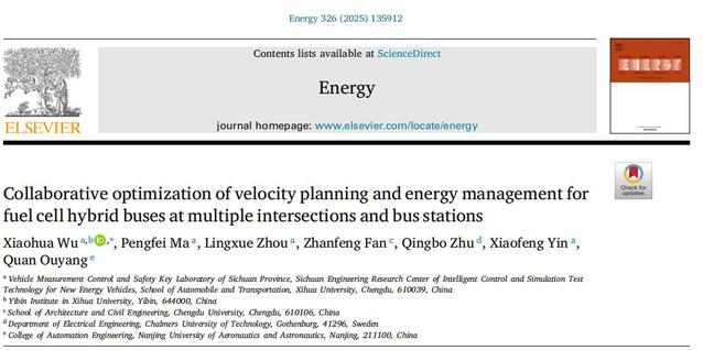另一篇发表于《Energy》(IF:9.4,中科院一区 Top)的论文,由武小花教授担任第一作者、2023级硕士马鹏飞为第二作者,聚焦城市燃料电池公交车的行驶特性,提出基于最小等效氢耗的节能车速规划策略。相较于基于实车真实驾驶场景与改进智能驾驶员模型的传统策略,该技术在信号交叉口通行时间、停车时长、时间节省率及整体通过效率等方面均展现显著优势。通过将节能车速规划与Q-learning整车能量管理策略深度融合,实现了驾驶行为与能量分配的协同控制,为城市公交领域的节能环保升级提供了切实可行的技术路径。