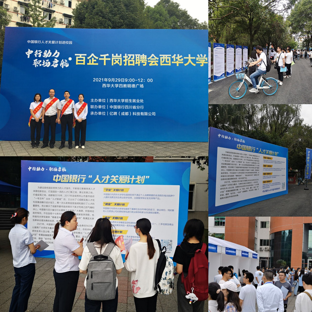 为落实国家“十四五”规划纲要提出的激发人才创新活力,深化人才发展机制改革,响应中国银行总行与教育部签署的《全国普通高校毕业生就业创业促进行动战略合作协议》,中国银行四川省分行面向高校学生客群制定了“人才关爱计划”,搭建了“高校场景项目”,从“学业、就业、置业、创业”四个维度对在校客群展开深度关爱。在“就业”维度背景下,由我校招生就业处主办,中国银行四川省分行联办,亿聘(成都)科技有限公司承办的“职场启航、中行助力”校园系列双选活动,于9月26日--29日在校本部圆满举行。