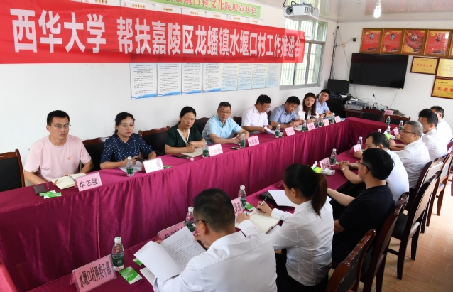 紧接着,双方在村委会召开西华大学帮扶嘉陵区龙蟠镇水堰口村工作推进会,南充市委常委、统战部部长廖伦志,嘉陵区区委副书记、区长张青松,区委常委、宣传部部长罗适,区委组织部、区教科体局、区乡村振兴局、龙蟠镇、水堰口村负责人参加座谈。龙蟠镇党委书记孙伟和水堰口村党支部书记杨阳分别介绍了镇、村的现状和下一步工作计划,刘小兵介绍了学校2021年定点帮扶工作开展情况和工作安排。余孝其在讲话中强调,在今后的帮扶工作中,西华大学将围绕定点帮扶主要任务和工作重点,以产业支撑夯实乡村振兴经济基础,以教育引领聚焦优势开展智志双扶,以文化铸魂深入推进乡风文明建设,以党建引领筑牢乡村振兴战斗堡垒,持续推进定点帮扶工作,为嘉陵区巩固拓展脱贫攻坚成果同乡村振兴的有效衔接,继续贡献西华力量。嘉陵区区长、我校1992级中文系校友张青松表示,在母校的帮扶下,嘉陵区一定坚决将帮扶成果巩固到位,推动脱贫攻坚向乡村振兴平稳地衔接过渡;坚决将帮扶情谊延续到底,全力为定点帮扶的驻村干部创造良好的工作环境、居住环境、生活环境;坚决将校地合作落实到底,依托西华大学的智力优势,结合嘉陵区的产业发展,有针对性地加强合作,实现校地合作互惠共赢。