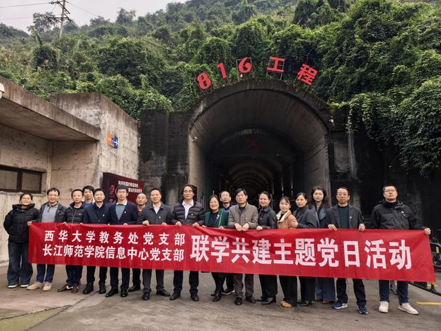 调研期间,西华大学调研组一行还与长江师范学院信息中心党支部携手,共同前往重庆涪陵816地下核工程遗址,以“传承红色基因,共筑教育初心”为主题开展联学共建党日活动,在校际交流互鉴中凝聚教育发展共识,在红色精神洗礼中寻迹三线精神,共筑红色教育初心使命。