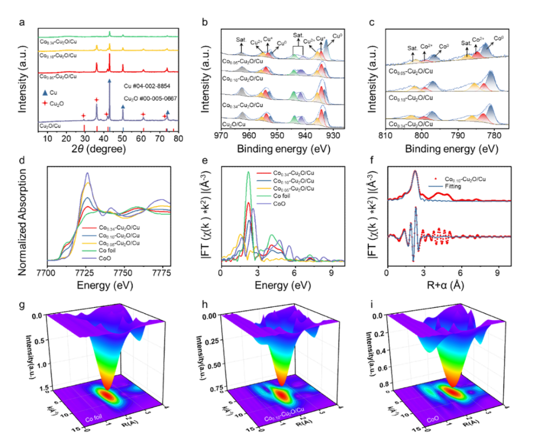氨(NH₃)是氮肥、医药及其他重要工业产品生产过程中的关键基础化学品. 本文旨在通过电催化硝酸盐还原反应(NITRR),将环境中的硝酸盐污染物转换为具有附加值的NH₃,既解决了硝酸盐污染的问题,又实现了氮资源的循环利用. 然而,电化学NITRR涉及复杂的多电子转移反应步骤和缓慢的动力学过程. 同时,竞争性析氢反应(HER)和含氮副产物的产生,导致额外的电能消耗,降低了NITRR产NH₃的选择性和能量效率. 因此,设计和制备具有高选择性NITRR电催化剂,仍然是电催化领域的热点研究课题。目前,铜(Cu)基催化剂由于其独特的外层电子构型(3d10),是实现高选择性电催化NITRR为NH3最具潜力的电极材料。然而,Cu基材料对水分子活化产活性氢(*H)的能力较弱,从而阻碍了电化学NITRR过程中所必需的*H产生的动力学过程。鉴于钴(Co)基催化剂有利于水分子活化产生*H, 故利用Co掺杂Cu基催化剂调节电化学NITRR过程中*H浓度,以提升NH₃的产率和选择性是本文的主要研究思路.