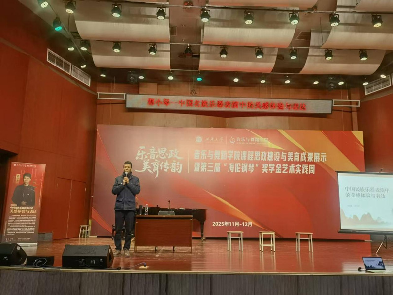 11月27日,音乐与舞蹈学院举办“乐音思政 美育传韵”器乐教研室系列活动。活动涵盖学术讲座、教学研讨会与音乐会三大板块,是学院课程思政建设与美育成果展示暨第三届海伦钢琴奖学金艺术实践周的重要组成部分。