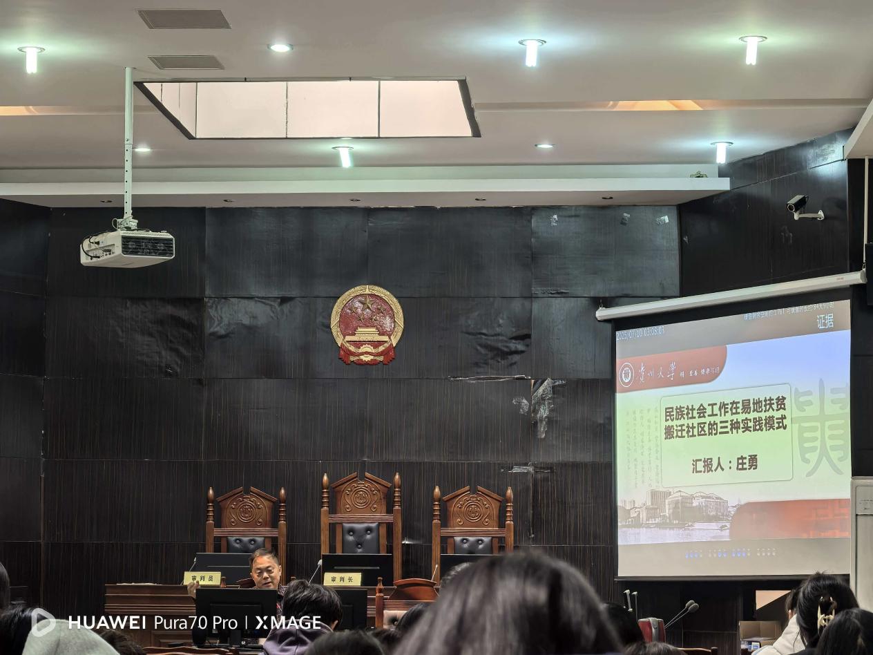 11月29日,社会工作与健康管理学院(心理健康教育中心)在新模拟法庭举办研究生学术讲座,特邀贵州大学公共管理学院教授、博士生导师庄勇担任主讲嘉宾。讲座以“民族社会工作在易地扶贫搬迁社区的三种实践模式”为主题,由学院副院长熊征主持,社工系主任刘婷以及相关专业师生共同参与。