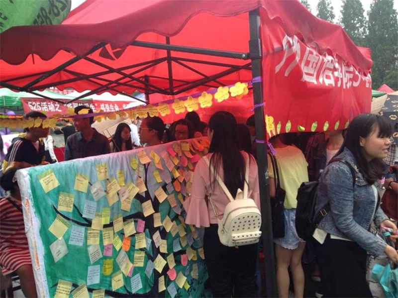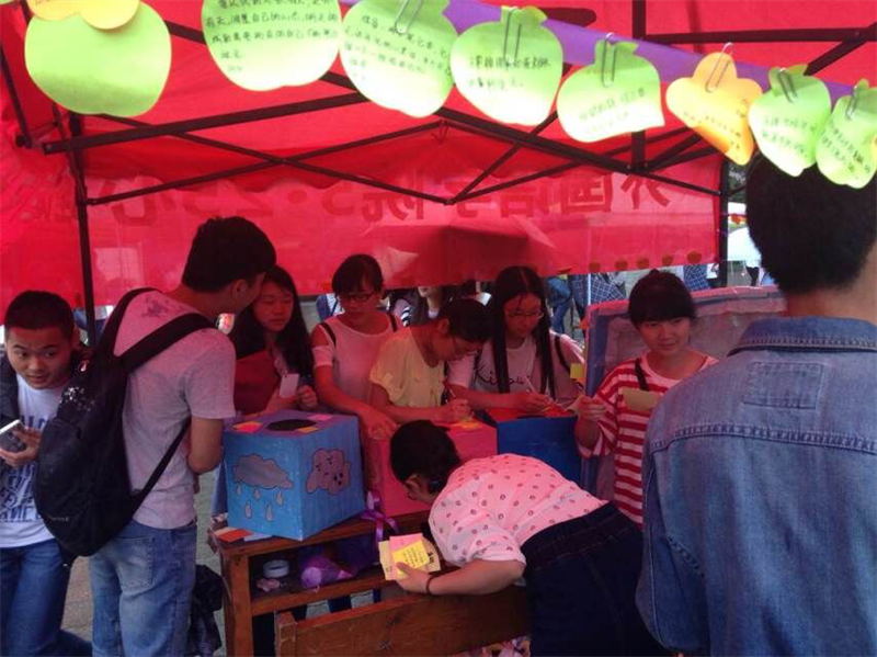 5月25日,由心理健康研究与服务中心主办,外国语学院承办的以“拍心灵灰尘,还青春靓色”为主题的心理健康教育活动在明德广场顺利举行。 活动共分“敲开心门——单词组拼”、“清理心房——扔掉烦恼”、“擦拭心窗——你的烦恼他帮忙”、“粉刷心墙——心理知识漂流瓶”四个环节。 “敲开心门——单词组拼”环节要求参与者随机挑出一张卡片,根据卡片上的字母,想出一个与心理有关的单词,将能想出的单词根据感情色彩分类,分别贴到optimistic或pessimistic两个板块里,活动增强了英语的趣味性,帮助了学生树立积极的心态。“清理心房——扔掉烦恼”邀请参与者写下自己的烦恼,丢入“烦恼吞噬机”,拿走一片写着正能量的树叶,使心灵负与正的转化,帮助其缓解心理压力。“擦拭心窗——你的烦恼他帮忙”环节以生动略带搞笑的对话形式,创造一种能让同学们分享苦恼以及面对苦恼时激励自己的话语的氛围。“粉刷心墙——心理知识漂流瓶”以漂流瓶的形式,向参与者普及心理健康小知识。 本次活动进一步加强了学院师生对心理健康教育的关注度,普及了心理健康知识,提高了学生心理素质,引导学生用积极健康的心态去面对学习和生活。