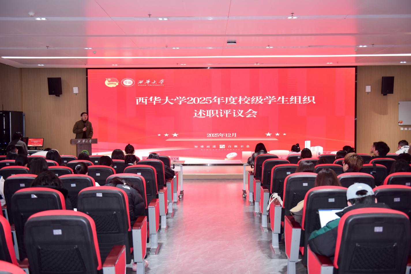 西华大学学生会、研究生会、校团委组织部、宣传部、文化艺术部、青年志愿服务总队、学生社团管理部、七个学生组织部门进行现场述职。各部门就2025年度的工作成果、部门自身建设进展、现存短板不足及对未来发展规划四个方面展开汇报。校团委全体老师、各学院团委书记和由主席团代表组成的评议团进行现场评议。