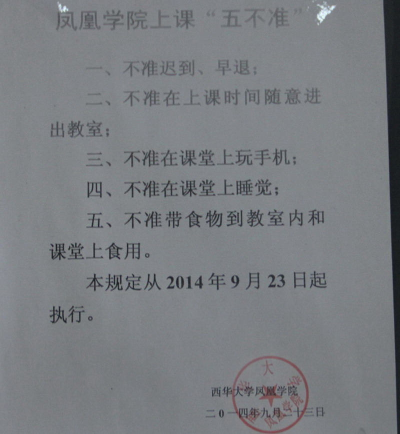 | “我要当学霸!”听到这句话,你可能会一笑而过,但如今,它在凤凰学院的学生中却是一个不再被“嘲笑”的段子。近期,为了使学生克服不良习气,认真学习,更好地实现教学目标,凤凰学院再出重拳——上课交手机。 一直以来,学院不断开展教学改革工作,促进学风建设。课程小考改革、学习委员严格考勤登记、“五不准”方针等措施的实施取得了良好的效果,学院学习风气大为好转。然而随着时间的推移,同学们逐渐松懈,于是学院再出“新招”——上课交手机。 凤凰学院党总支书记兼副院长陈召平表示:“‘五不准’是对大学生的最‘底线’要求,但是‘底线’一再被突破,学习风气明显变差。作为学院,应该以培养优秀人才为己任,因此很有必要提出‘上课交手机’这一举措。”同时他表示:“通过这几天执行的情况来看,都得到了任课老师的支持与肯定。整个课堂的秩序,同学们的专注度都大大提高。学院将准备坚持做下去,并且希望全体凤凰学子能够积极配合这一举措。” 新规出台,看法各异 “上课交手机”一经出台,便在学院引起了广泛讨论,看法不一。 凤凰学院传媒系副主任刘勇说道:“‘上课交手机’施行后能够明显感觉到同学们的学习态度完全不一样,老师们上课更加充满激情,不再需要花费时间维持上课的课堂纪律。在大三的课堂上施行后效果非常好,令人惊讶。”他还强调,为了加强学院学风建设,传媒系将把‘五不准’和‘上课交手机’纳入学生平时考核成绩的百分之十来计。 同学们看法也各异,有些同学对于“上课交手机”这一做法并不很赞同,他们认为大学是一个相对自由的环境,学院不应该强制让学生上交手机。但仍有一大部分的同学表示理解和支持,2015级广播电视学新生刘露说:“我非常支持此项规定,它有利于学生在课堂上集中注意力,更好地学习专业知识。” 新规实施,正确看待 上课交手机是一项具体化的措施,但其实施却有一定的难度。大学轻松好玩的传统观念深深影响着学生,实施初期学生可能会有抵制心理,不愿遵守规定,因此学生对“上课交手机”规定的正确认识与真正接受就是问题的关键。对此,教学运营管理中心总监罗成聪说:“学生们要学会‘算账’,我们每一年拿父母的钱是来学校买‘知识’的,我们应该珍惜上的每一堂课,用知识武装自己,而不是在课堂玩手机。” “交手机”的规定只是在课堂这个特定的时间段,让学生暂时离开手机进入学习状态中,学生若是理性认识这项规定,消除抵触心理,不仅有利于第一课堂教学质量的提高,而且有助于自身良好习惯的养成。 作为“五不准”提出后的再次改革,“上课交手机”是针对学院目前现状提出的切实可行的措施,有利于学院更好地实现教学目标。
