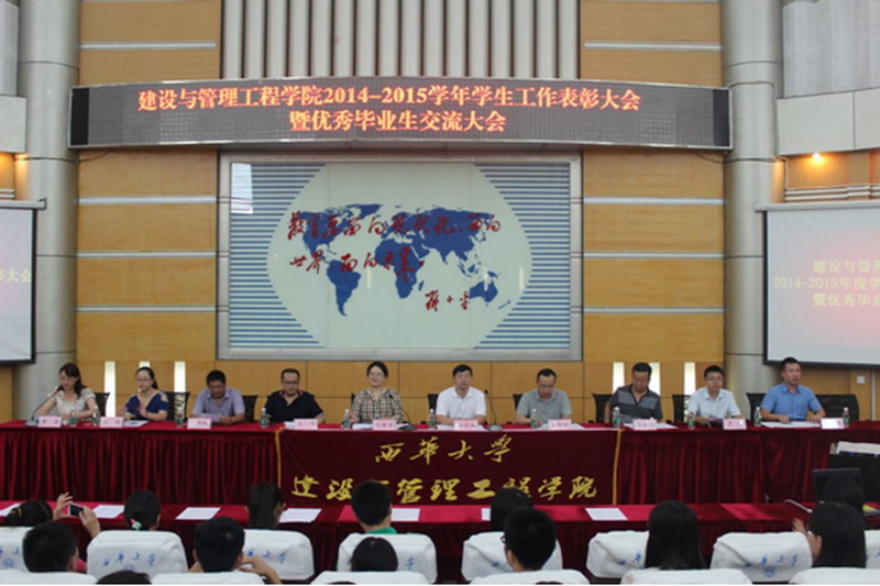 6月18日12:10,建设与管理工程学院2014-2015年度学生工作表彰大会暨优秀毕业生交流会在四教报告厅如期举行。学院主要党政领导、学生工作办公室辅导员、部分班主任以及全体获奖学生代表参加了此次表彰大会。本次大会由学院党委副书记黄潇主持。 表彰大会在嘹亮的国歌声中拉开帷幕。接着,全体成员观看了一段学院学生工作视频,视频集中呈现了学院自成立以来取得的斐然成绩。随后,院长谢合明宣读了表彰文件,把大会带入到了颁奖环节。大会分别颁发了校级奖项及院级奖项,共有8个团支部、2个院团委学生会部门、9个学生寝室及168名同学受到院级表彰。 获奖代表领奖后,学院党委书记龙雅芳讲话。她高度赞扬了获奖同学积极进取,争先创优的拼搏精神,同时对建管学子提出了“坚定信念,立志发奋成才;勤奋好学,砥砺自身意志;兼收并蓄,构建复合型知识结构;挑战自我,积极参与创新创业”的希望,激励大家努力践行“三严三实”,全面提高自身素质,与新学院同舟共济,共创辉煌!接下来,优秀毕业生代表上台发言,陈虹礼等四位同学分享了自己的求学之路,同学们表示受益匪浅。 大会在全体与会成员的热烈掌声中落下帷幕。此次大会表彰了在学生工作中表现先进的集体与个人,为建管学子树立了奋发向上、严以律己的学习榜样,并为学院下一年度学生工作的顺利开展提出了展望。