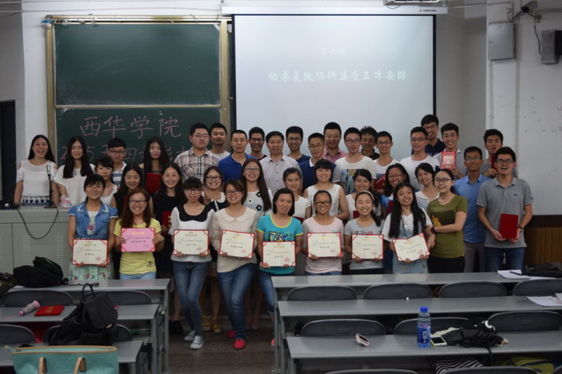 | 5月15日中午12:30,西华学院在6B-101多媒体教室隆重举行2015年“五四”表彰大会。西华学院党总支书记兼副院长何承源、西华学院办公室李绍军、李维春老师、2013和2014级全体学生及学院团委学生会主要成员参加了此次表彰大会。 学院团委书记李绍军总结了过去一年来西华学院取得的各项成绩,提出要继往开来,与时俱进,鼓励各年级同学继续努力,再创佳绩。 会议宣读了学校“五四”青年标兵、校级优秀团干部、校级优秀团员、院级优秀团干、院级优秀部长、院级优秀干事名单并颁奖。何承源书记为获得表展公的同学一一颁奖,并与他们合影留念。 获奖学生代表刘道远、曹联瑢分别作了发言。学院学生会主席刘道远作为优秀团干部代表,分享了他的成长经历和工作经验。学生会干事曹联瑢作为优秀干事代表分享了自己在校学习生活中的感想和收获,表达了对未来发展的坚定信心。 “五四”表彰大会在全体参加人员合影留念后结束。