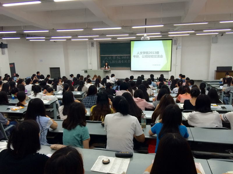 5月11日上午8点,人文学院在6A-107举行2013级就业指导暨考研考公经验分享交流会,辅导员王燕晶、徐薇,13级汉文、学前、汉语国际以及14级部分同学参加会议,会场座无虚席。2012级汉文、学前6名考研考公务员考选调成功录取的同学应邀作了经验分享交流。交流会由学工办主任兼13级辅导员徐攀主持。