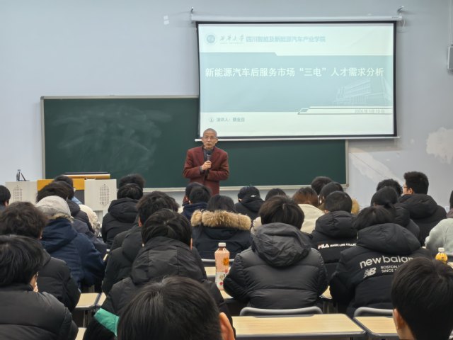 2026年1月10日下午,西华大学宜宾校区迎来一场聚焦新能源汽车行业发展前沿的专题讲座。本次“新能源汽车后服务市场‘三电’人才需求分析”讲座,由该校汽车服务工程专业校外导师、汽车电子领域资深售后技术专家、成都金豆电子技术公司创始人蔡金豆主讲,旨在精准对接行业人才需求,为汽服专业学子搭建校企沟通桥梁,明晰职业发展方向。