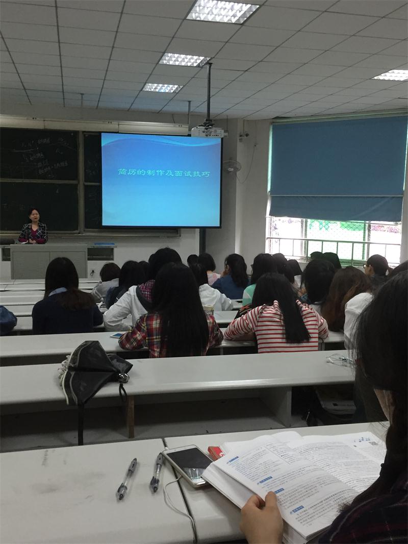 | 5月26日上午10:00,经济学院在4A—107开展了简历的制作和面试技巧 5月26日上午10:00,经济学院在4A—107开展了简历的制作和面试技巧就业指导讲座。2013级各专业同学参加,学院副教授张玲主讲。 讲座开始,张玲指出今年就业率较往年有所下滑。她指出,一份好的简历将会为同学们创造面试的机会,同时也会增加同学们的自信。接着,她介绍了简历制作的方法以及面试前的准备、面试中的技巧,并逐一向同学们讲解了简历的填写方式与填写技巧,以及向同学们亲自演示了面试时的握手、坐姿等礼节,全场气氛活跃。 张玲把应届毕业生比作商品,建议同学们明确自己的目标,列出自己的特征,同时注意扬长避短,才能更好地把自己向企事业单位展现出来。正如她所引用的美国名人名言“最后得到工作的,不一定是那个最有资格的人,而是最懂得推销自己的人。” 讲座最后,张玲祝愿同学们就业顺利。同时,同学们也感谢张玲老师在百忙之中抽出时间为大家提供宝贵的经验。同学们都表示在这次讲座中获益匪浅,将会有更加充分的准备去迎接面试就业。