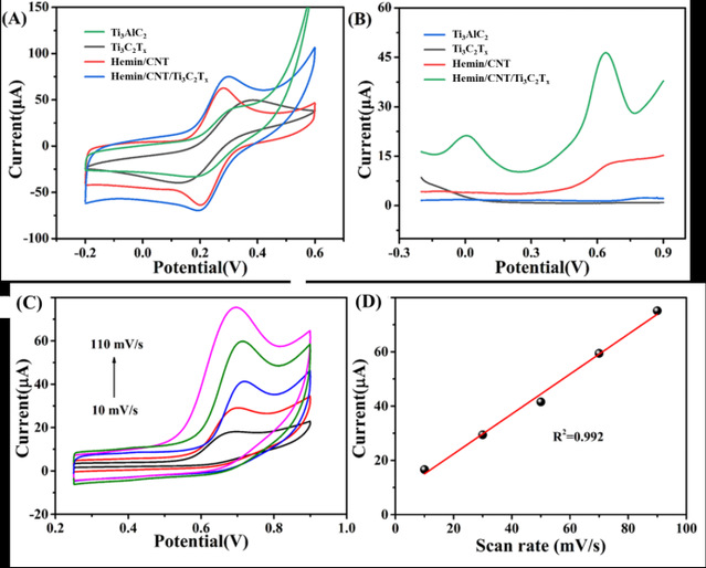 Hemin/CNT/Ti₃C₂Tₓ的电化学传感性能得到显著提升。