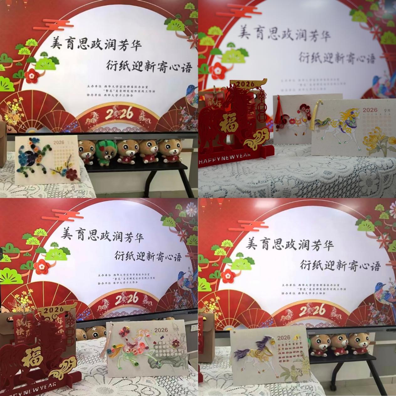 1月9日,学校易班发展中心与“繁花”美育研究创作实践工作坊共同举办“美育思政润芳华·衍纸迎新寄心语”衍纸艺术主题工作坊。活动以中华传统衍纸工艺为载体,融合审美教育、思想引导与心理涵育等内容,是学校构建“五育并举”育人体系的一次具体实践。