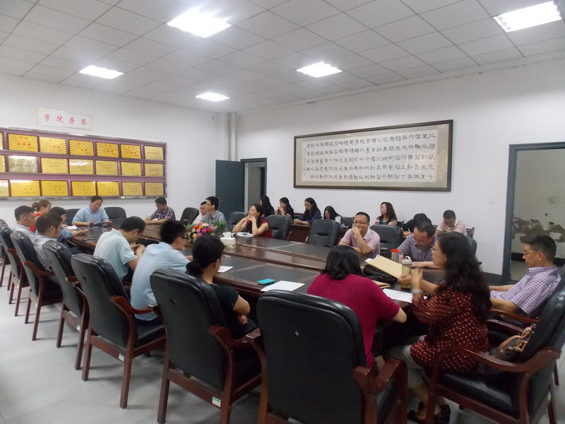为响应学校开展的领导班子思想政治工作建设专题活动,贯彻落实习近平同志提出的作风建设“三严三实”的工作要求,提高人文学院全体党员素质和党性修养,6月4日下午16:00,人文学院在6A-108会议室开展了以“三严三实”为主题的党员教育活动。本次党课由学院党委书记王大清主讲,全体教工党员参加。 会议现场 |