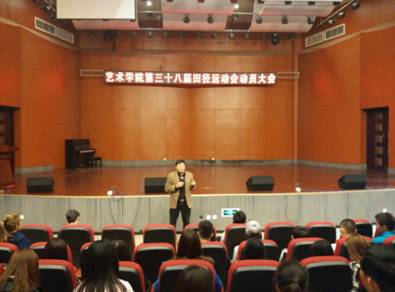 4月18日中午12点20,艺术学院第三十八届田径运动会动员大会在艺术大楼音乐厅顺利召开。学院党委副书记、副院长曾贤,学工办主任裴西宏,团委书记杨科以及所有运动员参加了本次会议。