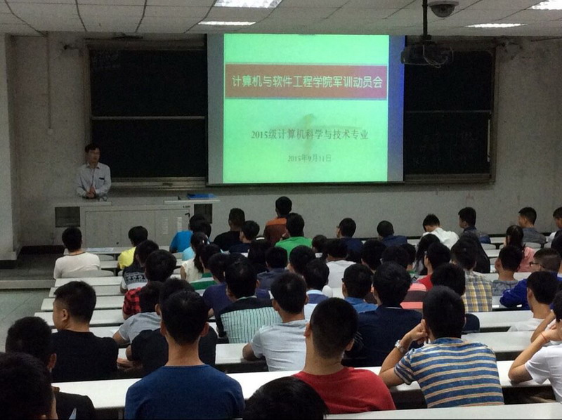 9月11上午,计算机与软件工程学院在6B108、4A104分别召开2015级新生军训动员大会。学院党委副书记、副院长毕达平,军训指导员奉姣,新生辅导员李贵春以及全体新生参与动员大会。 毕达平做军训动员,他强调全体参训同学要服从安排,听从指挥,发挥吃苦耐劳的精神,积极参加军事训练和理论课程的学习,强调军训对学生的作用,提醒在训练过程中,要注意保护好自己,关注自身的身体状况,有问题及时向指导员请假。另外,在整个军训期间要礼貌对待军训教官。 |