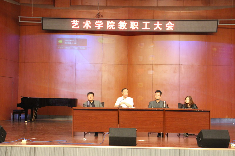 4月16日下午,艺术学院在艺术大楼音乐厅召开全院教职工大会,全体学院领导、教职工参加了会议。 会上,学院党委书记胡雪峰希望大家认清形势,转变观念,立足根本,把握重点,紧跟学校改革形势,从教学、科研方面加强建设,要在认真完成各项工作任务的同时,重点抓好学科调研、师德师风建设。要以提高质量为中心,着力加强学科建设、人才队伍建设,坚持解放思想、改革创新,推动学院各项事业又好又快发展。 学院主持工作副院长屈立丰在会上通报了学校近期相关工作进展情况。他强调,学校今年将进行一系列改革,希望各位老师认真研判,转变观念,做好准备。学院将积极支持老师外出参加短期培训、参加国内外重要学术会议,积极举办学术讲座、组织学术交流,开展学术沙龙、主办学术会议,不断营造良好的学术氛围,为学院教师学术的发展创造条件。 学院党委副书记曾贤在会上通报了近期学院学工办检查学生上课出勤情况及目前学院毕业生就业情况,他希望各位老师在做好教学的同时进一步加强对学生出勤情况的检查、点名工作,进一步关心毕业生就业工作。院长助理张玉萍对学院近期教学、实验室建设等工作作了详细安排和部署。