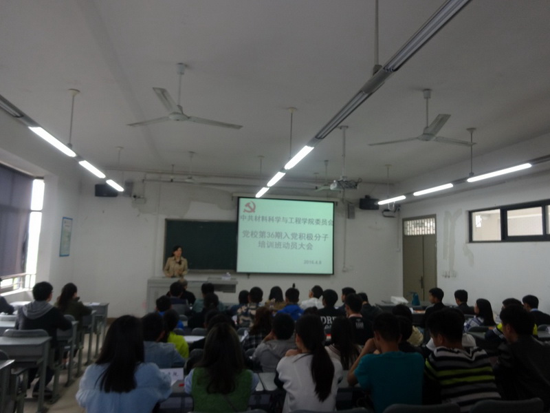 4月8日中午,材料学院在5B209召开了第36期入党积极分子党校培训班动员大会,学院党委副书记谢君,学生总支书记郭忠林以及党校第36期入党积极分子参加了此次会议,会议由郭忠林主持。